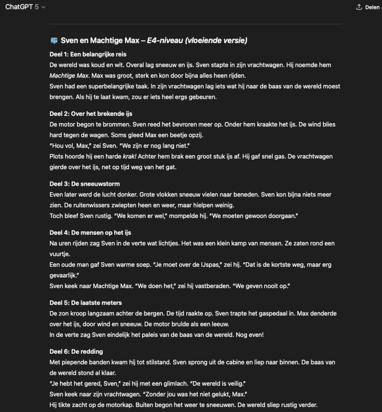 Om voorkennis te activeren en instructie kracht bij te zetten, gebruik ik onder andere ChatGPT. Daarmee laat ik teksten op maat maken voor begrijpend lezen of technisch lezen, afgestemd op het niveau of de interesse van mijn leerlingen. Zo sluit de inhoud beter aan bij hun leefwereld, wat de betrokkenheid vergroot en de leerstof betekenisvoller maakt.