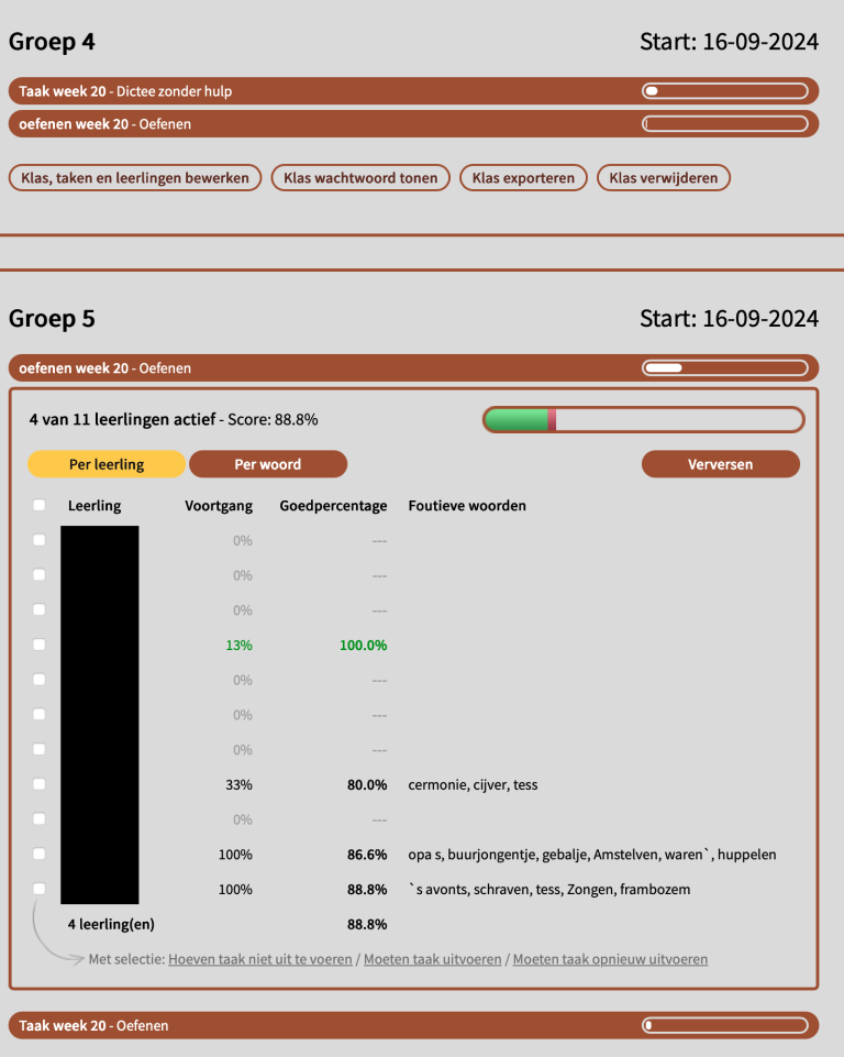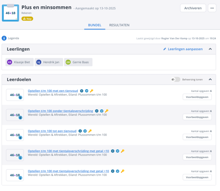 Daarnaast gebruik ik de online methodes van Pluspunt en Staal. Na de verwerking in het werkboek loggen leerlingen in via hun device om digitaal verder te oefenen met de doelen van die week. In deze omgevingen kan ik de leerdoelen en weektaken klaarzetten, zodat leerlingen precies weten waar ze aan werken en ik hun voortgang kan volgen.